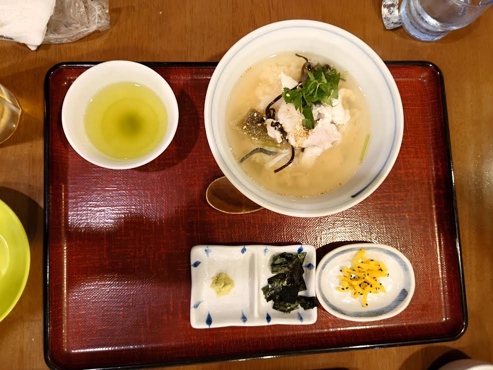 ふぐ唐揚げとふぐ雑炊とふぐ茶漬けを頼みました(3名で)。